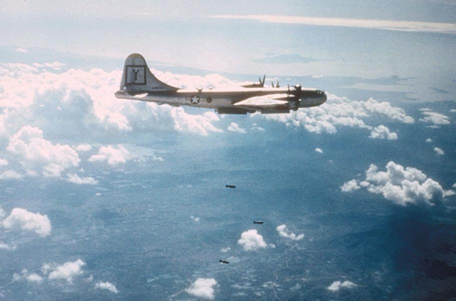 Bombardér B-29 Superfortress kdesi nad Koreou. Z podobného vyskočila také první skupina výsadkářů. (foto: Wikimedia Commons, U.S. Air Force, CC0)