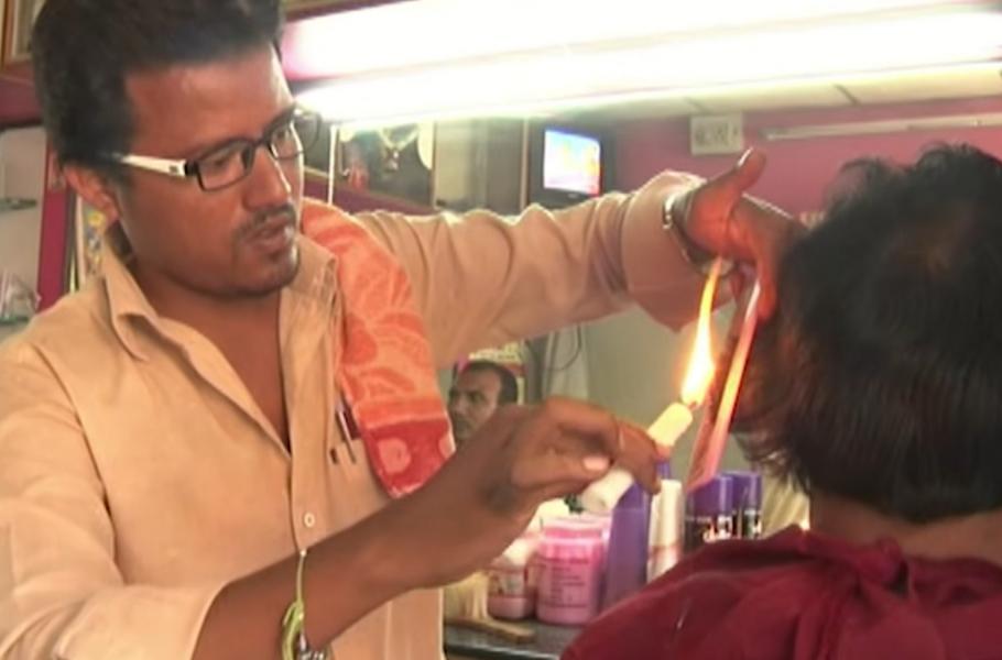 Místo nůžek plamen svíčky: Originální kadeřnická technika mladého Inda