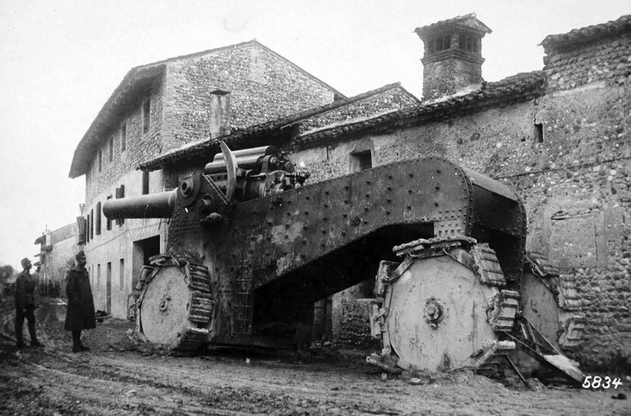 Původnímu záměru nasazení houfnice odpovídá také podivný podvozek, jejž konstruktéři ke zbrani museli vymyslet až dodatečně. Z toho důvodu také zbraň vzbudila zaslouženou pozornost mezi rakousko-uherskými a německými vojáky, když jim devět těchto kanonů padlo do rukou po bitvě u Caporetta na podzim roku 1917.