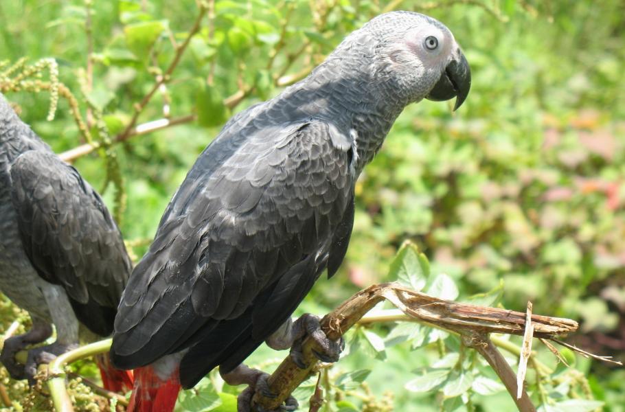 Žako šedý (Psittacus erithacus) je v tomto fotografickém výčtu jediným zástupcem afrických papoušků. V Africe obývá pobřežní oblasti západní části kontinentu, především v Ghaně, Sierra Leone a na Pobřeží slonoviny. Obvykle měří něco přes 30 centimetrů. (foto: Wikimedia Commons, Lucy Keith-Diagne, CC BY 4.0)