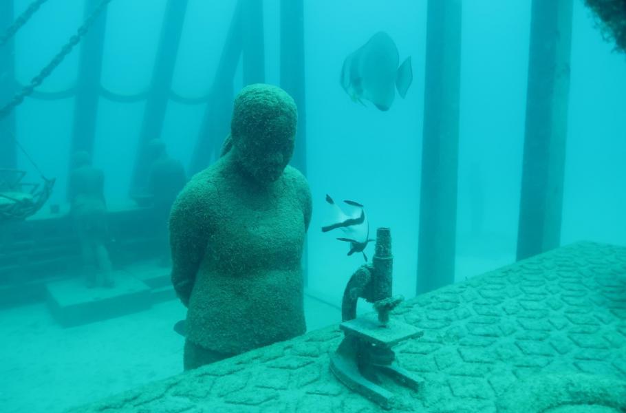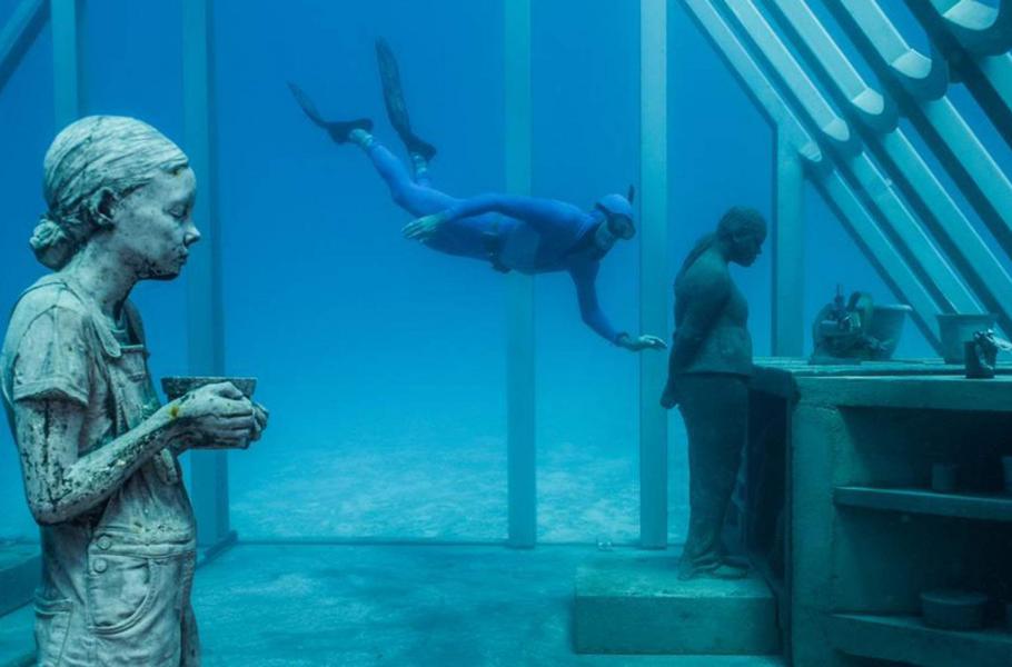 Jason deCaires Taylor je britský umělec, sochař, fotograf, potápěč, ekolog a milovník přírody. Je ale také velký experimentátor – všechna jeho nejslavnější díla jsou totiž umístěna pod hladinou moře.