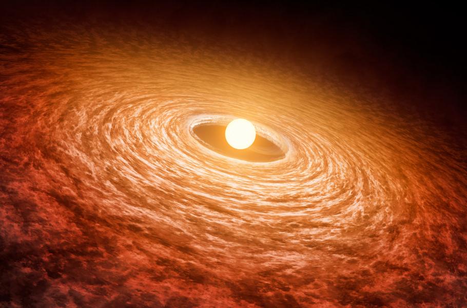 Protoplanetární disk u mladé hvězdy FU Orionis. (ilustrace: NASA/JPL-Caltech, CC0)