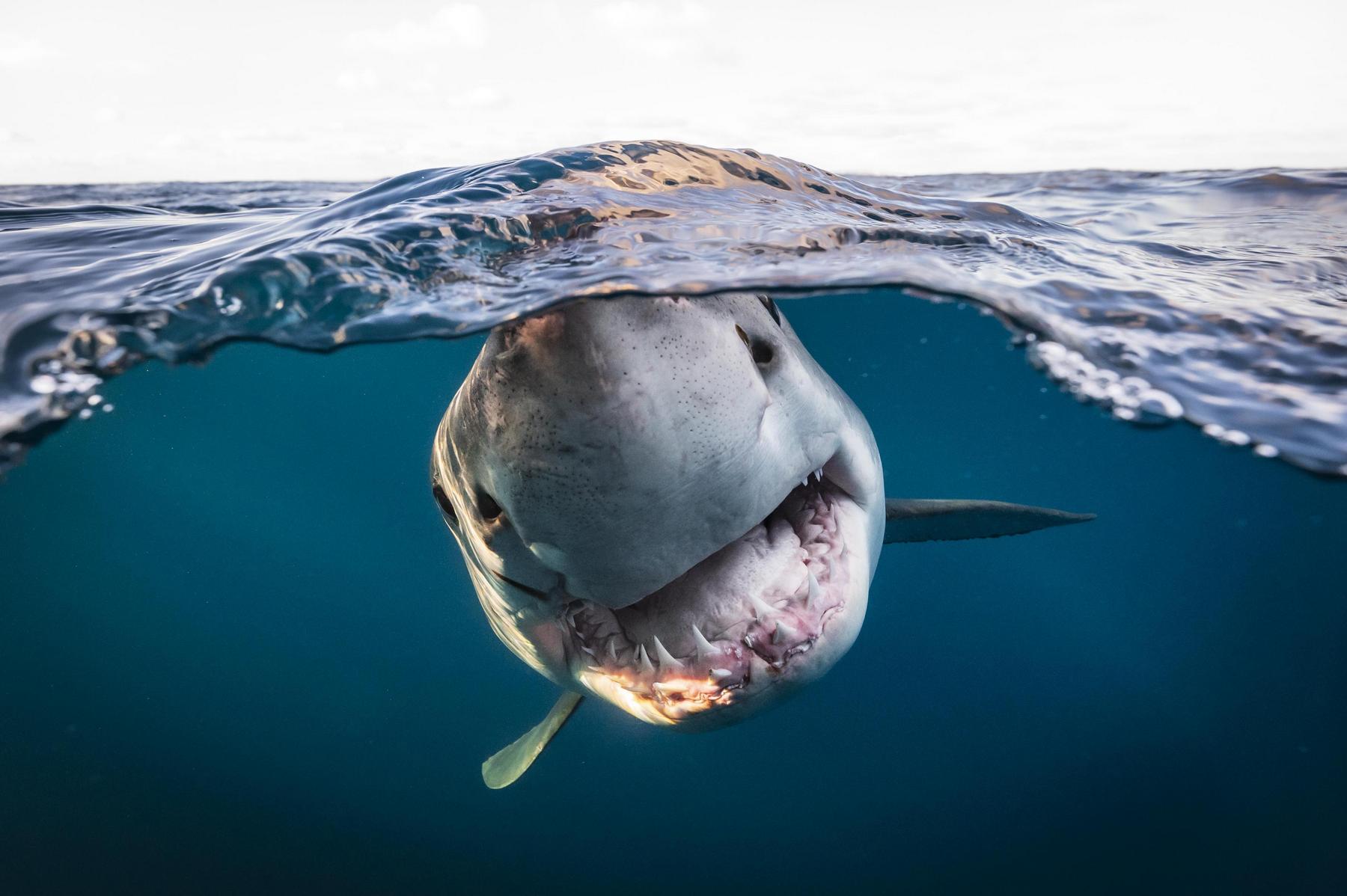 Cenu britského podvodního fotografa roku získal Matty Smith za portrét velkého bílého žraloka, který se také umístil na druhém místě v kategorii Portrét. „Už několik let jsem se snažil pořídit charismatický portrét velkého bílého žraloka. Všechny techniky, které jsem předtím zkoušel, ale selhaly, takže jsem si tentokrát navrhl a zkonstruoval vlastní fotografickou tyč s dálkovou spouští. Žraloci byli okamžitě přitahováni k fotoaparátu, aniž bych musel používat návnadu – ve skutečnosti to byla spíše bitva a musel jsem je odhánět,“ okomentoval svůj úchvatný snímek jeho autor. (foto: Underwater Photographer Of The Year 2022, © Matty Smith)