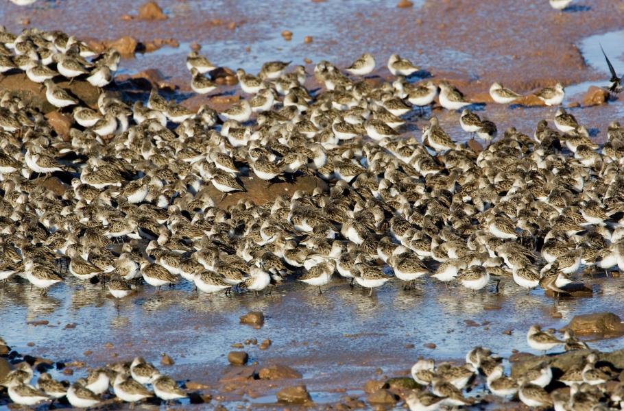 Jespáci srostloprstí (Calidris pusilla) patří k opeřeným světoběžníkům. Zimují v Jižní Americe a hnízdí v Kanadě a na Aljašce. Při návratu ze zimovišť se každé jaro zastavují ve velkých hejnech na atlantickém pobřeží Severní Ameriky, kde se několik dní krmí a čerpají síly k dalšímu letu. K jejich oblíbeným zastávkám patří Delawarská zátoka nebo zátoka Fundy. Právě tady jespáky sledoval kanadský biolog Guy Beauchamp z University of Montreal. Všímal si jejich chování při lovu drobných bezobratlých tvorů a zjistil nápadný rozdíl ve způsobu shánění potravy mezi jedinci na okraji a uvnitř velkých hejn.