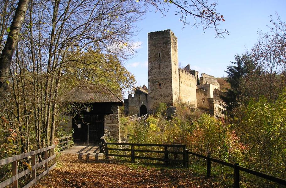 Jako výchozí místo zvolte vesnici Merkersdorf, kde odstavíte auto buď na návsi nebo na parkovišti u hradu Kaja, česky Chýje. Tento monumentální hrad byl vybudován pravděpodobně již ve 12. století jako článek řetězce pohraničních pevností na řece Dyji. V jeho držení se střídala rakouská i česká šlechta, v 17. století byl již opuštěný a začal se proměňovat ve zříceninu. V 70. letech 20. století prošly rekonstrukcí hradní kaple a palác, v němž lze během léta zhlédnout malou muzejní expozici věnovanou středověkým pevnostem na Dyji.