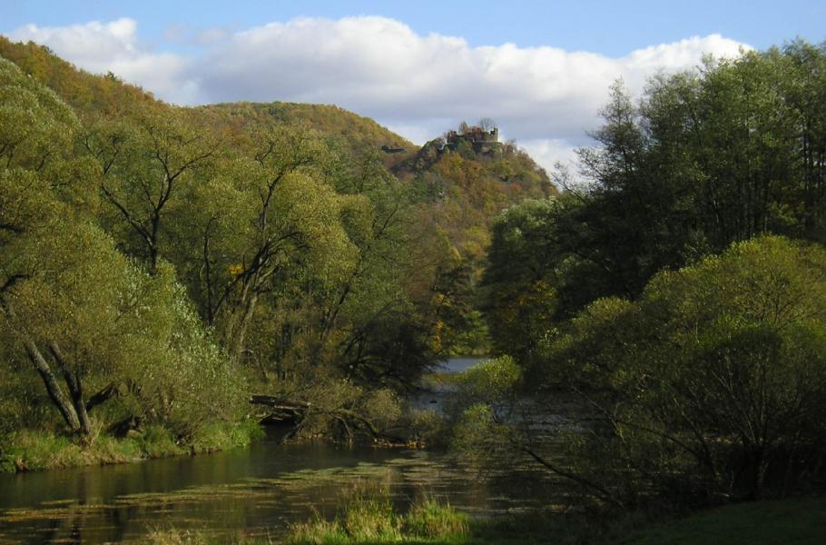 Neobvyklý pohled na náš Nový Hrádek ovšem není na této trase jediný. Stačí popojít zhruba dva kilometry a najednou jej spatříte z úplně jiné strany! Řeka se tady totiž kroutí ve dvou mohutných meandrech, z nichž jeden obepíná výše zmíněný hrad.