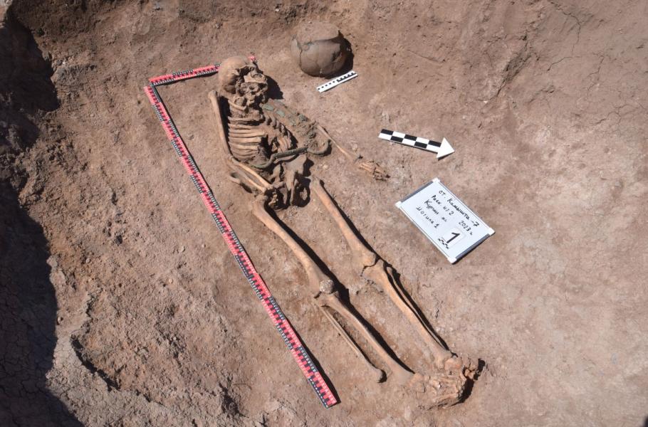3000 let starý hrob, odkrytý u vesnice Kamyšta v Chakasii, ukrýval ostatky vozataje s bronzovými šperky, nožem a vybavením, usnadňujícím řízení válečného vozu