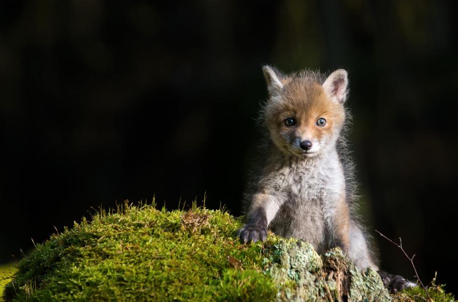 Slunce se pomalu nořilo za koruny starých smrků a já uvažovala, jak dlouho mi ještě dovolí fotit. Liščata se stále střídavě ukazovala, hrála si, a co chvíli jakoby v úprku zase mizela za skalkou. Při jednom návratu „na scénu“ ale opět zůstala stát s pohledem upřeným jedním směrem. Na úpatí pahorku mezi stromy stála máma liška. Netuším, odkud přišla, poprvé jsem ji však zaregistrovala, když stála na mechem porostlém balvanu. Byla nehybná jako socha a dívala se směrem ke mně. Za okamžik seskočila a šla naproti svým mláďatům. Jejich vzájemné setkání netrvalo příliš dlouho, liščata svou matku přivítala a jedno jí očichalo čenich. Pak liška vyslala další pohled k mému úkrytu a odcházela. Ještě jednou vyskočila na stejný balvan a její upřený pohled znovu potvrdil, že o mně ví. Pak se otočila a zmizela mezi stromy.