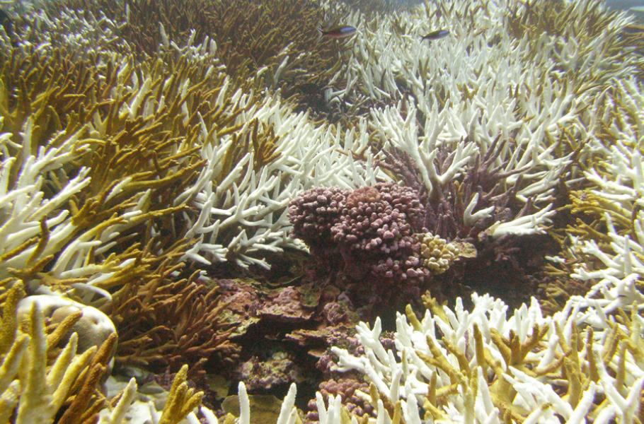 Blednutí korálů a vymírání korálových úseků zasáhlo Velký bariérový útes severně od města Cooktown