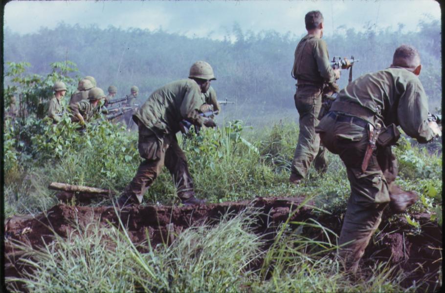 Pro běžného pěšáka, kterému se přezdívalo „grunt“ (nejvhodnější český ekvivalent je „blátošlap“), představoval turnus v „Namu“ (americká zkratka pro Vietnam), neustálé hledání nepřítele, což on sám vnímal spíše jako únavné trmácení krajinou (nejen džungle, ale i bažiny, rýžová pole, gumovníkové plantáže či strmé kopce). Již samotný pohyb terénem byl v případě takzvaného sekundárního porostu (člověkem vysekané a následně opuštěné části tropických deštných lesů, kde následně přístup slunečního světla nastartoval růst bujné vegetace) či mangrovníkových bažin extrémně náročný a pomalý, přičemž obvyklé tempo postupu činilo pouhých 100–500 metrů za hodinu.