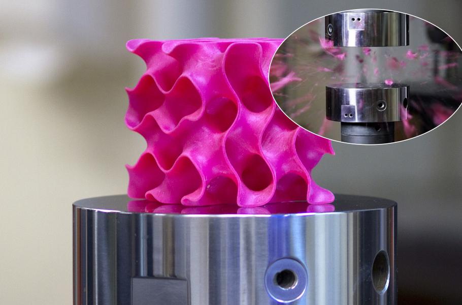 Vlastnosti nového materiálu badatelé testovali zajímavým způsobem, na důmyslných modelech struktury, které vytvořili pomocí 3D tiskárny s vysokým rozlišením.