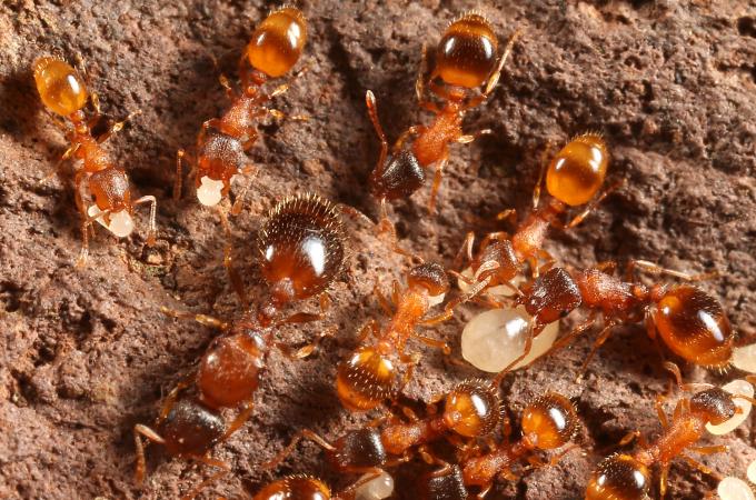 Ještě větší škody napáchal africký mravenec Pheidole megacephala poté, co byl koncem 19. století náhodně zavlečen na Havajské ostrovy. Zaplavil nížiny a vyhubil valnou většinu tamějšího hmyzu. V důsledku nedostatku potravy následně vymřelo několik druhů hmyzožravých ptáků. Tento mravenec táhne krajinou v početných šicích. Dělnice v předním voji „čistí“ oblast pro mravence ze zadních vojů, kde pochodují spolu s dělnicemi i budoucí mravenčí královny. Na takto „ošetřeném“ prostoru zakládají mravenci Pheidole megacephala nové kolonie. Tím je jejich nadvláda nad obsazeným územím završena.