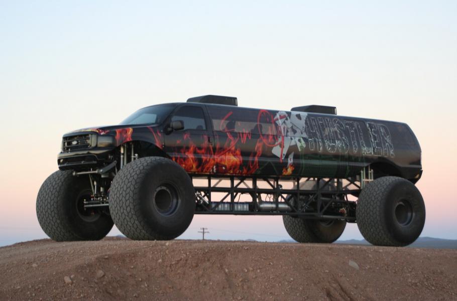 Bezmála deset metrů dlouhý Sin City Monster Truck je nejdelší monster truck na světě. Uveze 12 osob a můžete se jím projet v poušti White Hills, která leží 45 minut cesty od Las Vegas. Kdybyste si tohoto drobečka chtěli pořídit, budete si muset připravit rovný milion dolarů (v přepočtu zhruba 24 milionů korun). A k čemu takový kolos vlastně slouží? Kromě nejrůznějších předváděcích jízd jej jeho majitelé Brad Campbell s manželkou Jennifer využívají k přepravě svých zákazníků a horkovzdušných balónů.