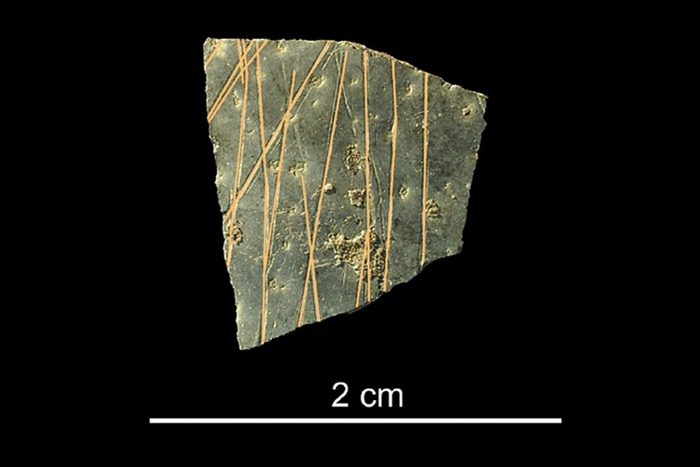Geometricky zdobená skořápka pštrosího vejce (foto: PLOS One, Valentina Decembrini, CC BY-SA 4.0)
