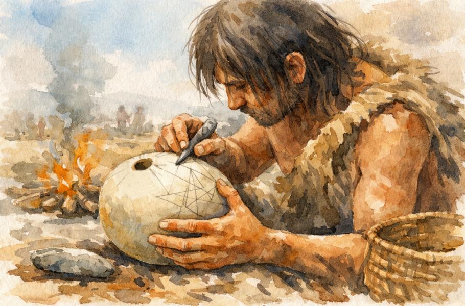 Nejstarší známý doklad geometrického myšlení u člověka druhu Homo sapiens pochází z Jižní Afriky. (ilustrace: ChatGPT, PDM 1.0)