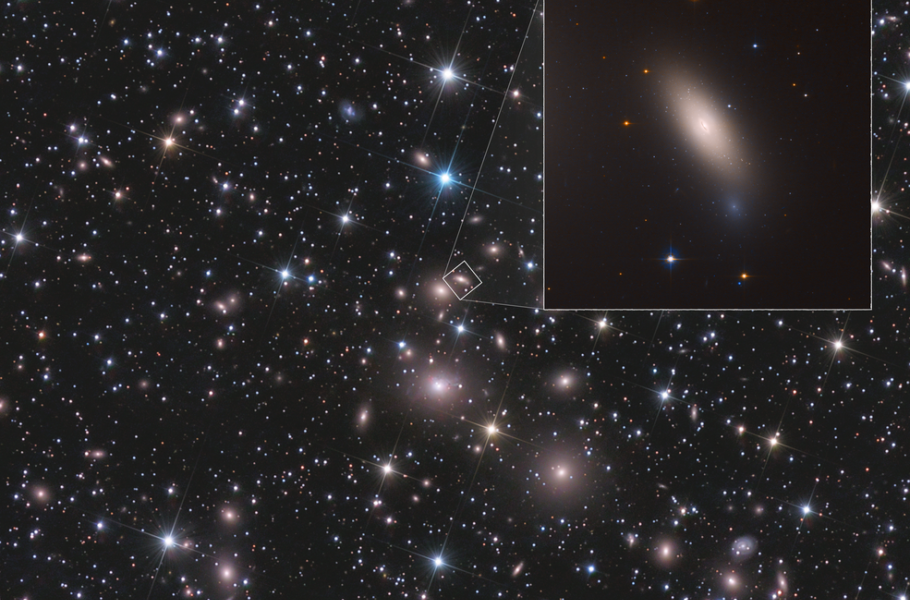 Jde o galaxii NGC 1277, kterou pozorujeme ve vzdálenosti asi 240 milionů světelných let. Galaxie vznikla v dávné minulosti na počátku vesmíru. Tehdy v ní bouřlivě vznikaly hvězdy, mnohem intenzivněji než v dnešní Mléčné dráze.