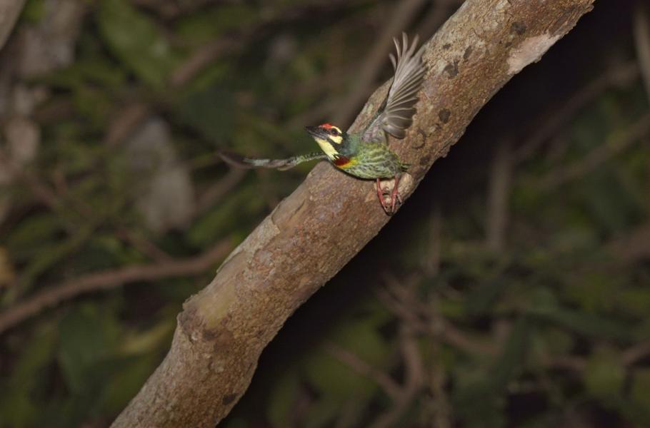 „Tuk … tuk … tuk …“ je právě takovým zvukem, jenž zní v lesích od Indie, přes jihovýchodní Asii až po Filipíny. Jak často ale tento charakteristický zvuk uslyšíte, tak málo uvidíte jeho původce. Po řadě pokusů, kdy si skoro vykroutíte hlavu při zírání do nepřehledných korun stromů, se vám snad nakonec poštěstí „pachatele“ zahlédnout: je to vousák zvučnohlasý (Megalaima haemacephala).