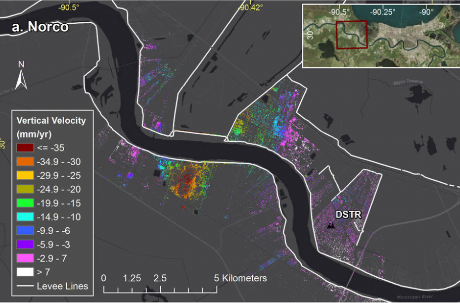 Že se New Orleans potápí nebylo žádným tajemstvím. Odborníci ale netušili, že v některých místech, jako je průmyslová oblast Norco, klesá povrch města ke dnu rychlostí až 5 centimetrů ročně.