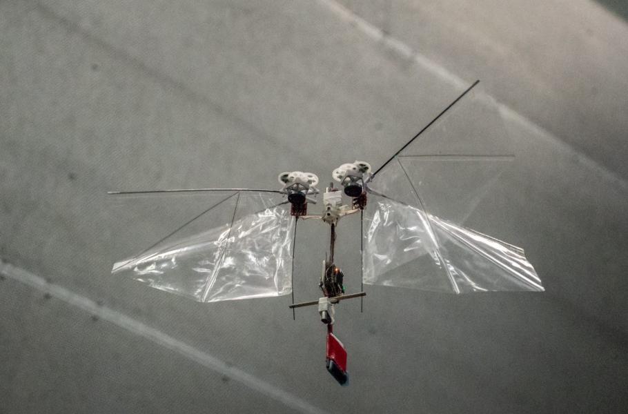 Robomoucha se čtyřmi měkkými křídly zvládne akrobacii a unese malý náklad
