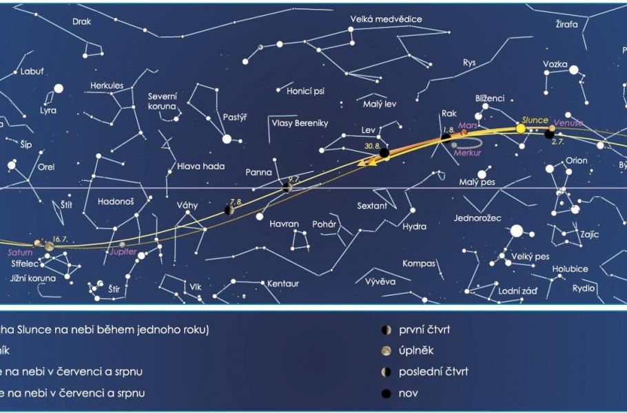 Mezi nejzajímavější události srpnového nebe bude patřit maximim meteorického roje Perseid, které letos připadá na noc z 12. na 13. srpna (k vidění bude ale řadu týdnů před tímto datem a i po něm). V tento den vstoupí Země na své cestě kolem Slunce do proudu drobných prachových částic, které se v minulých staletích uvolnily z jádra komety Swift-Tuttle. Některá tato tělíska zamíří přímo k Zemi a při průletu atmosférou se rychle ohřejí a vzápětí vypaří. My pak zahlédneme světelný doprovod takového zániku – meteor.