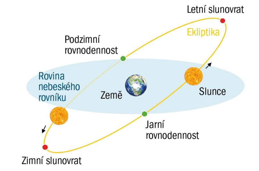 Zatímco první zmíněná křivka představuje dráhu naší hvězdy po nebeské sféře během kalendářního roku, druhá odpovídá průmětu zemského rovníku na oblohu. Pro nás je podstatné, že se obě křivky na dvou místech protínají. Dvakrát do roka se tedy Slunce, sunoucí se po ekliptice přes tzv. zvířetníková souhvězdí, ocitne i na nebeském rovníku. Jinak řečeno, stane přímo nad rovníkem zemským. Děje se tak vždy na jaře a na podzim: V prvním případě leží průsečík ekliptiky s nebeským rovníkem v souhvězdí Ryb a označuje se jako jarní bod, ve druhém se nachází v Panně a jde o bod podzimní.