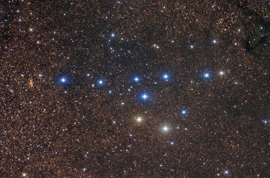 Nejspíš ho budete mít vzhůru nohama – záleží na konstrukci dalekohledu – ale po chvilce jej na nebi jistě rozeznáte: Zhruba desítka hvězd 5.–7. velikosti v popsané části oblohy opisuje tvar šatního ramínka nečekaně věrně. A zatímco jeho základnu tvoří modrobílé stálice, hvězdy v „háčku“ jsou žlutooranžové.