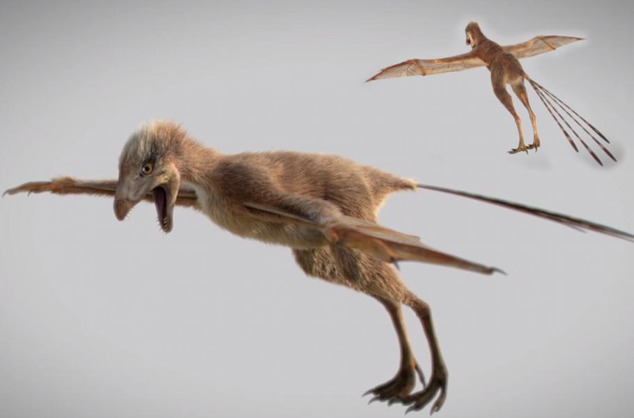 Nově objevený malý opeřený dinosaurus Ambopteryx měl křídla jako netopýr