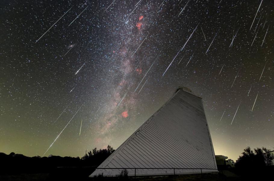 Meteorický roj Geminid nad slunečním dalekohledem NSF McMath Pierce v arizonské Národní observatoři Kitt Peak. (foto: Wikimedia Commons, KPNO, Rob Sparks, CC BY 4.0)