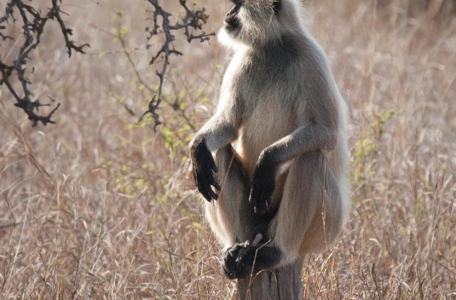 Hned v národním parku Sariska v severovýchodním Rádžasthánu jsme se přesvědčili, že Indie není Afrika. Kromě několika vypelichaných vycpanin v místním hotelu jsme nezahlédli ani tygří chlup. Jiné to bylo v Ranthambhore. Pohybovali jsme se v džípu s průvodcem ve vzdálenějším sektoru národního parku. Průvodci mají samozřejmě přehled, kolik tygrů je v rezervaci, kde se převážně pohybují a znají jejich zvyky. Právě tyto znalosti v kombinaci s nasloucháním zvuků pralesa jim občas pomohou objevit místo, kde se tygr právě vyskytuje. Hlavními hlasateli přítomnosti šelmy jsou jeleni sambaři (Rusa unicolor) a opice hulmani posvátní (Semnopithecus entellus).
