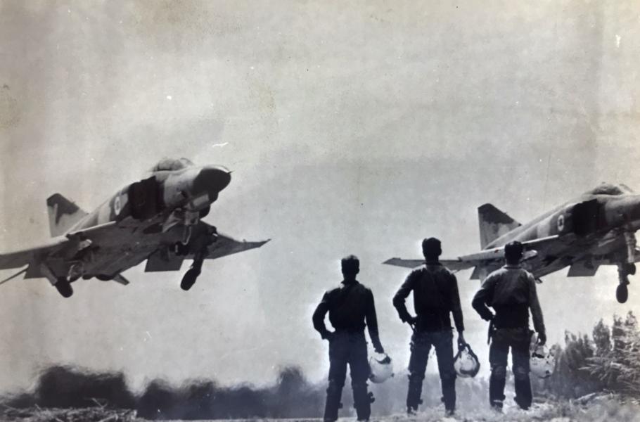 Bojové letouny F-4E Phantom II izraelského letectva při vzletu během jomkipurské války v říjnu 1973, které patřily mezi hlavní nosiče izraelských jaderných bomb. (foto: Wikimedia Commons, IDF, CC BY-SA 3.0)