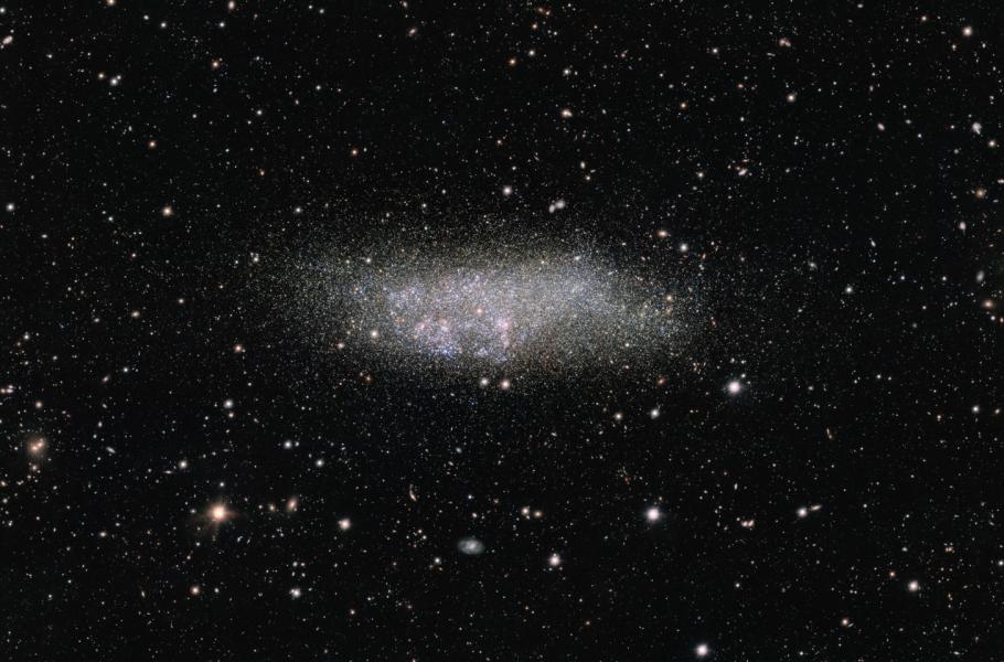 Hvězdné pole na tomto snímku zachycuje osamělou galaxii známou pod označením WLM neboli Wolf-Lundmark-Melotte. Ačkoli je považována za člena Místní skupiny galaxií, leží WLM zcela osamoceně na jejím okraji a je tak jedním z nejvzdálenějších příslušníků tohoto uskupení. Tato nenápadná galaxie je dokonce tak malá a izolovaná, že pravděpodobně nikdy v minulosti nedošlo k jejímu blízkému setkání s žádnou jinou galaxií.