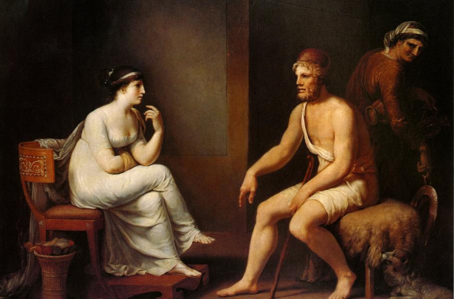 Bitva je vyhraná, teď už jen zbývá přesvědčit milovanou Penelopu, kdo je jejím zachráncem. Nešťastná žena dlouho nevěří, že otrhaný tulák je skutečně jejím manželem. Jak zjistit, zda to není podvodník? Brzy ale dostane nápad. Rozkáže mu přenést manželskou ložnici do jiné místnosti.