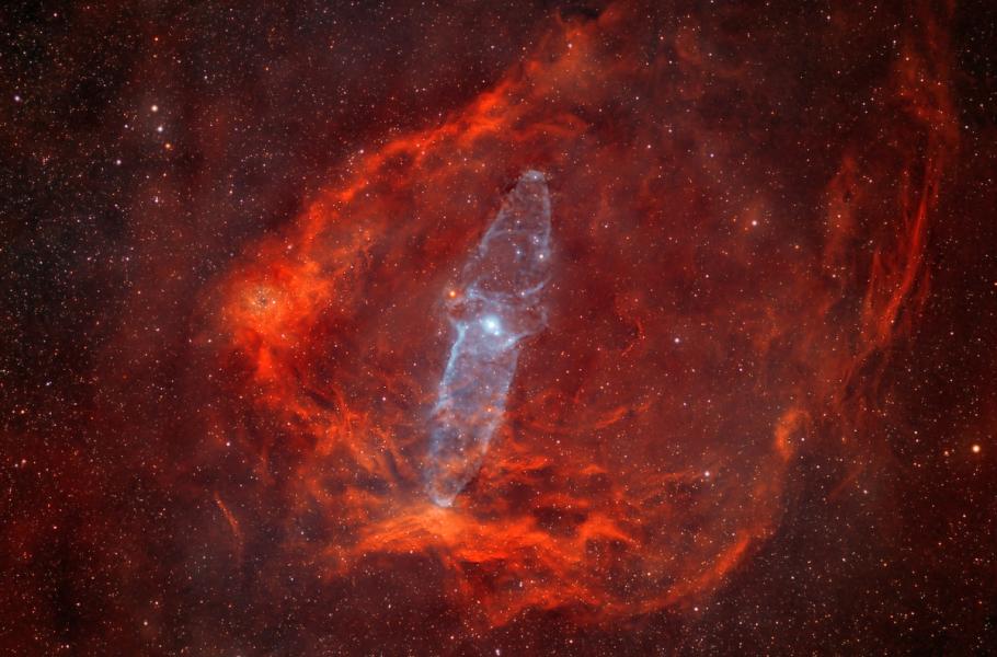 Jsou velmi slabé, zároveň ale opravdu velké. Mlhoviny Oliheň (Ou4) a Letící netopýr (Sh2-129) se nacházejí v souhvězdí Kefea. Vzdálenost, která je dělí od Země, je ale rozdílná – mlhovinu Letící netopýr dělí od nás zhruba 1 300 světelných let, k mlhovině Oliheň je to mnohem dál - zhruba 2 300 světelných let. Podle vědců představuje Oliheň ohromný výtok vyvolaný HR8119, což je trojnásobný systém žhavých, hmotných hvězd, který je vidět poblíž středu mlhoviny. Samotná obří mlhovina Oliheň, kterou v roce 2011 objevil francouzský astrofotograf Nicolas Outters, měří téměř 50 světelných let.