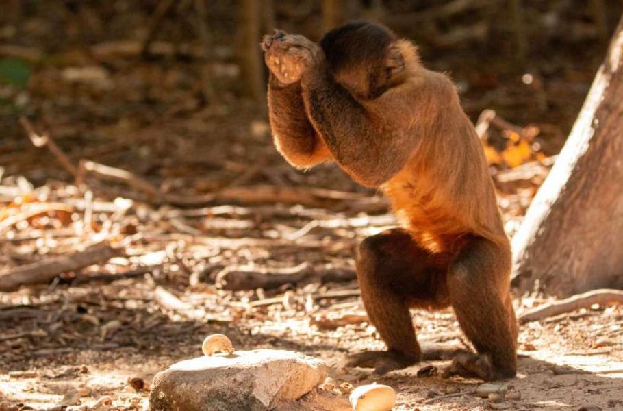 A jak se zdá, malpy to dělají již hodně dlouho. Vědci pečlivě prozkoumali místo, kam malpy nosí kameny, kterými louskají ořechy. Nalezli tam 1 699 kamenů, které malpy mohly používat. Na 122 z nich objevili neklamné stopy od malp. Opice si podle všeho nosí na louskání ořechů oblázky z nedalekého potoka.