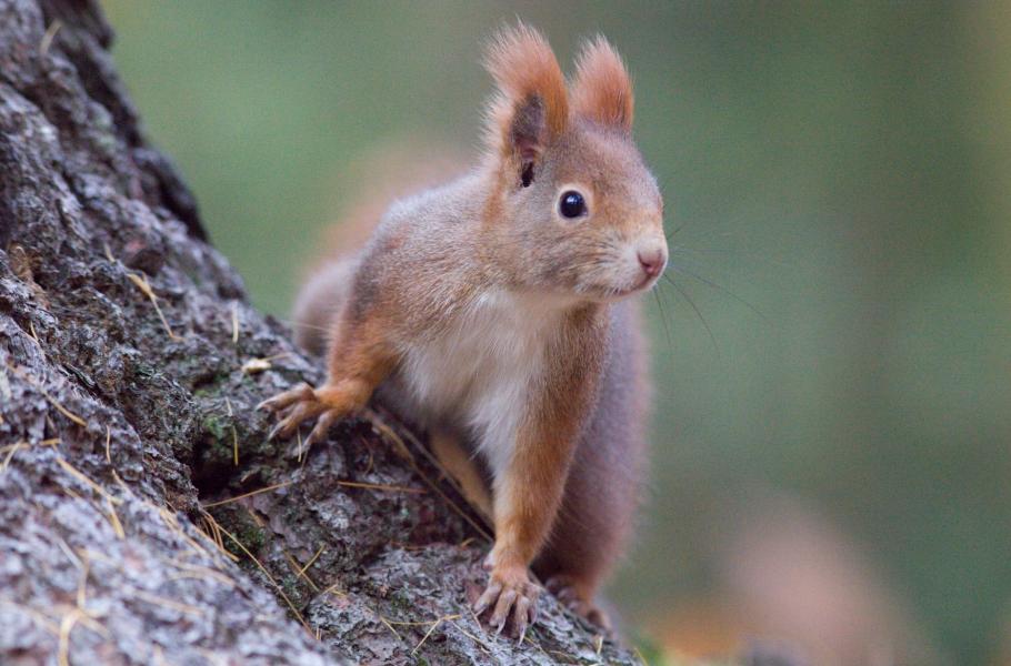 Vnímavá inteligentní očka upřeně sledují každý náš pohyb. Drobný hlodavec párkrát mrskne huňatým ocasem. Chvíli otálí, ale přemožen lákadlem v podobě lískového oříšku nakonec zručně přihopsá po křivolaké větvi až k pletivu a drobnými prstíky s ostrými, zahnutými drápky nabízený pamlsek přijme.
