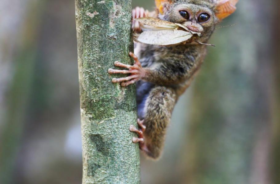 Dalšími dobře známými zástupci sulaweské fauny jsou „pralesní skřítci“ nártouni (rod Tarsius). Nejmenší primáti světa jsou více známi z nedalekého filipínského ostrova Bohol, jehož rezervace se díky nim těší vysoké návštěvnosti. Také Sulawesi ale skýtá příležitost celkem snadno pozorovat tato jen stogramová zvířátka ve volné přírodě. Jejich domovem jsou monumentální fíkovníky, parazitické stromy, které zaživa „uškrtí“ svého hostitele. Z korun spouští mocná ramena obepínající hostitelskou rostlinu, kterou nakonec zahubí a na jejím místě setrvávají po desítky let. Maličcí nártouni pak v dutých zákoutích fíkovníků nacházejí perfektní útočiště, kde po dlouhém nočním lovu pospávají.
