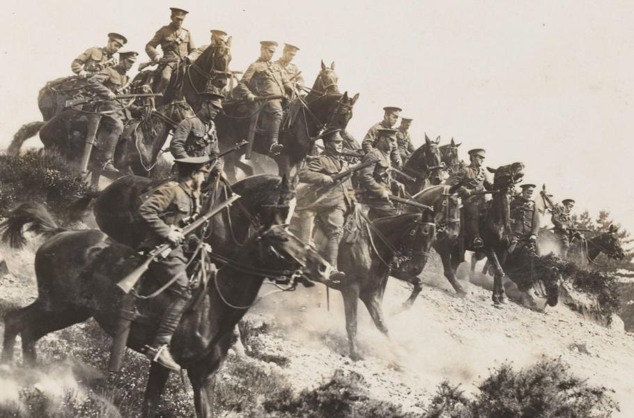 Nepříliš početné, ale výtečně vycvičené britské jízdní útvary sehrály v roce 1914 důležitou úlohu při zpomalení a zastavení německé ofenzivy. (foto: National Army Museum, CC BY-SA 4.0)