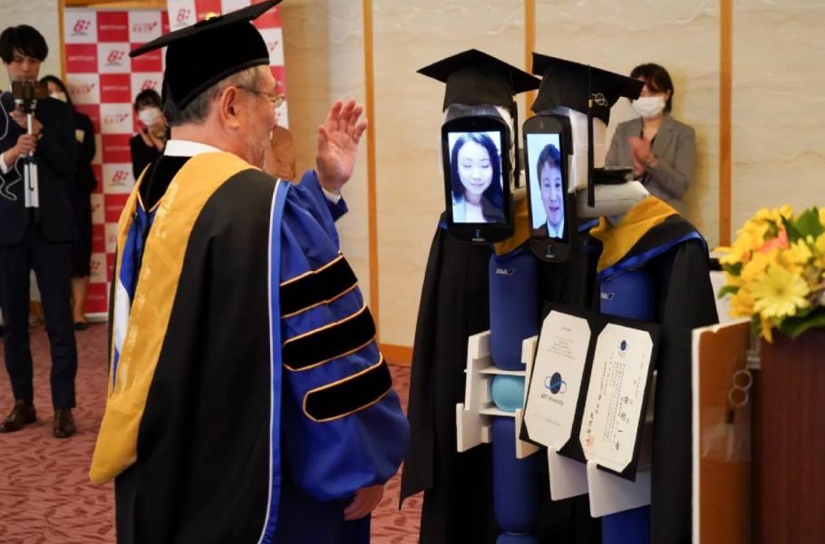 Koronavirus ovlivnil podle OSN životy až 92 % studentů po celém světě. Na univerzitách mimo jiné přerušil zkoušková období či promoce. Tokijská Business Breakthrough University se však nenechala virem zastavit a slavnostní zakončení studia uskutečnila pomocí robotů: Stroje na dálkové ovládání snímaly obličeje absolventů a promítaly je na obrazovku umístěnou v úrovni hlavy. Děkan Šugo Janaka, který celou událost naplánoval, pak vozítkům předal diplomy. Doufá přitom, že by netradiční, avšak oficiální akce mohla inspirovat také další vysoké školy.