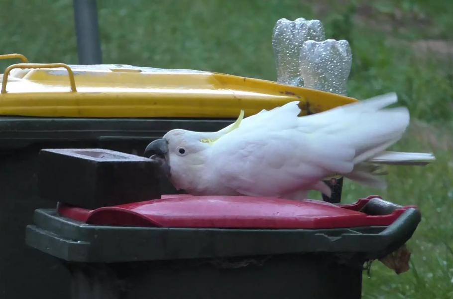 Mezi oblíbené kratochvíle kakaduů patří prohrabávání popelnic s odpadem. Na tom by nejspíš nebylo nic zlého, kdyby výsledkem jejich návštěv nebyla hromada odpadků rozházených všude kolem.