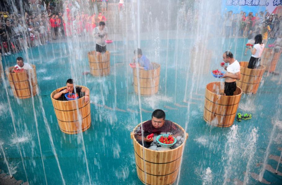 Zábavní park v čínském městě Chang-čou se stal dějištěm netradiční soutěže: Účastníci měli za úkol sníst během tří minut co nejvíc chilli papriček, přičemž museli sedět v kádi plné studené vody a ledu. Mnozí soutěžící ostrý kontrast mezi chladem a vnitřním žárem nevydrželi a z klání odstoupili. Vítězem se stal nejmenovaný muž z Čcheng-tu, který i v extrémních podmínkách spořádal v časovém limitu 62 papriček.