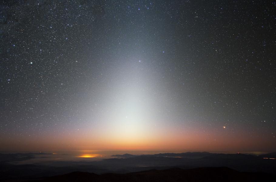Kosmický prach je také „spolupachatelem“ zvláštního nebeského úkazu – zodiakálního světla, jež vzniká rozptylem slunečního záření na miniaturních částečkách prachu. Za temné a jasné noci na Zemi vypadá zodiakální světlo jako slabá bílá difúzní záře, kterou je možné na obloze pozorovat na konci soumraku a na začátku rozbřesku.