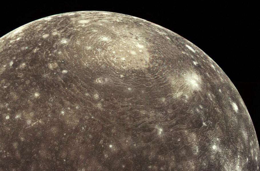 Pozdnímu intenzivnímu bombardování nečelily jen planety ve vnitřní části Sluneční soustavy, ale i vzdálenější tělesa. Četné zásahy utržily také velké Jupiterovy satelity: například na Callisto dopadlo asi 40× více těles než na povrch našeho Měsíce, a na Ganymed dokonce 80× více. Snímek zachycuje jednu z největších impaktních struktur v celé Sluneční soustavě – nazývá se Valhalla, nachází se na Callisto a její průměr přesahuje 1 900 km!