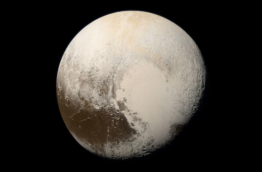 Fotografie Pluta pořízená sondou New Horizons 14. července 2015. (foto: NASA/APL/SwRI, Alex Parker, CC BY-SA 4.0)