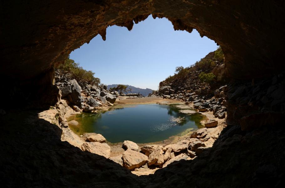 Obří jáma Bimmah Sinkhole (nedaleko hlavního města Maskatu) je v arabštině nazývána „dírou, kterou udělal v zemi kámen z nebes“. Ománci se tedy už dříve domnívali, že se jedná o kráter vytvořený dopadem meteoritu. Dnes však víme, že jde o propast. Zřícením stropu jeskyně vznikla přes 20 metrů hluboká a 50 metrů široká proláklina, do níž prosakuje slaná voda z nedalekého moře. Celá řada jeskynních systémů čeká v tomto koutě světa na objevení a prozkoumání. Dle zdejších legend totiž sídlí v jeskyních zlé síly a Ománci se do podzemí nehrnou.