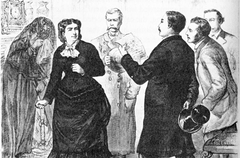 Zatčení Madame Restellové. Novináři ji označovali jako hříšnici, která podkopává kořeny sociálního pořádku. (ilustrace: Wikimedia Commons, CC0)