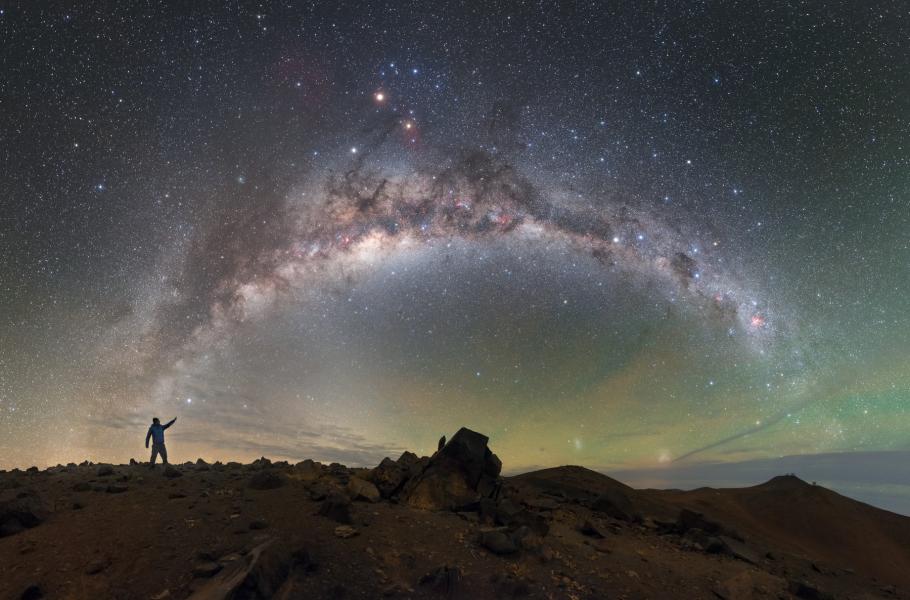 Začněme třeba na jihu Afriky, konkrétně v Namibii, jež má skutečně co nabídnout – od nejstarší pouště světa se zlatavými dunami přes majestátní horské oblasti až po „měsíční krajinu“, či dokonce pískovcový park s přírodními oblouky. Zmíněná země také ukrývá jeden z nejúžasnějších astronomických pokladů: železný meteorit Hoba, největší svého druhu nalezený na povrchu naší planety. Namibie rovněž skýtá úžasné podmínky pro pozorování noční oblohy: Stovky kilometrů silnic s minimem velkých světelně znečištěných měst znamenají podmanivou cestovatelskou svobodu, jen s určitým bezpečnostním omezením kvůli divoké zvěři. Stačí si půjčit terénní vůz, vyrazit za dobrodružstvím a kochat se hvězdným nebem.