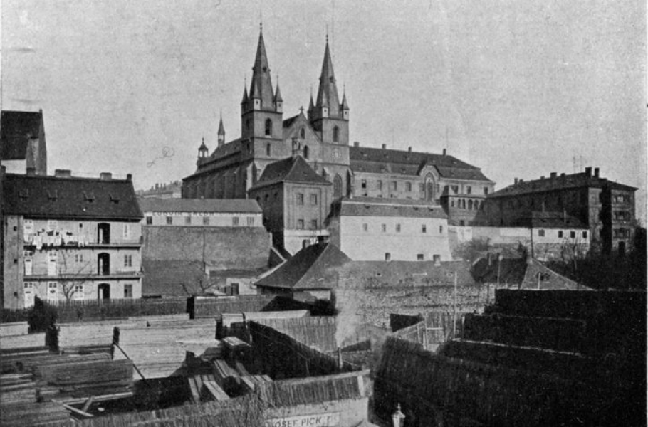 Emauzský klášter na přelomu 19. a 20. století. (foto: Wikimedia Commons, Deport & Panzer, CC0)