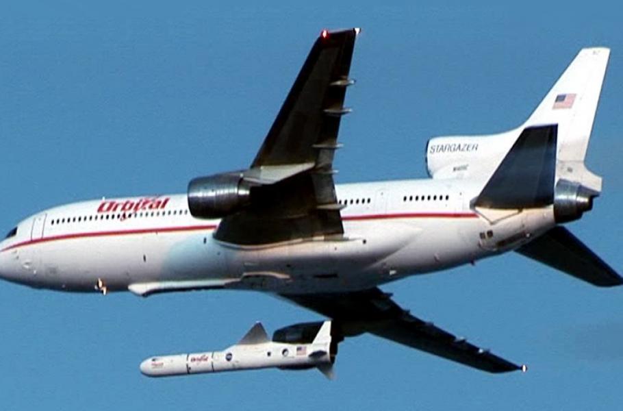 5. dubna 1990 absolvovala zbrusu nová okřídlená raketa Pegasus, vyvinutá soukromým sektorem v USA, premiérový kosmický start. Na rozdíl od jiných raket přitom nepotřebuje vypouštěcí komplex, protože startuje z paluby letounu ve výšce několika kilometrů nad zemí. Dnes nosič provozuje firma Orbital ATK.