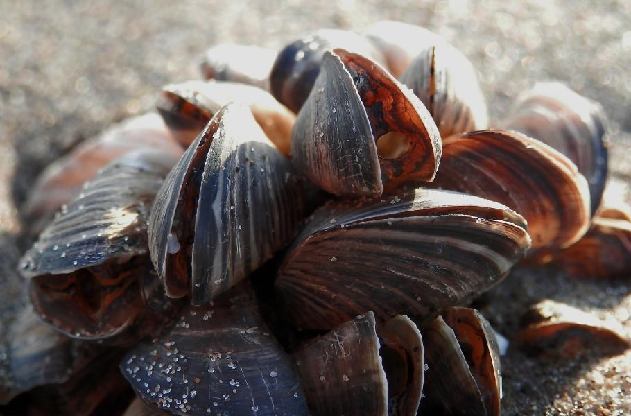 Slávička Dreissena bugensis na pobřeží Erijského jezera v Kanadě. (ilustrační foto: Wikimedia Commons, Ryan Hodnett, CC BY-SA 4.0)