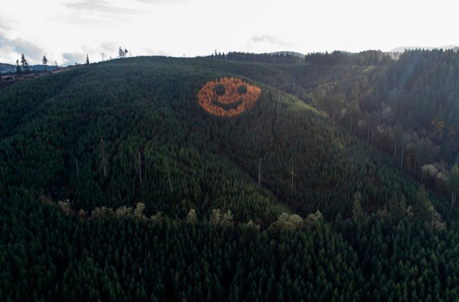 Návštěvníkům Oregonu, kteří na podzim jedou po zdejší Route 18, se mezi Willaminou a Grand Ronde nabízí zajímavý pohled. Ze zdejších lesů na ně shlíží obrovský smajlík. Neobyčejná podívaná je dílem pracovníků těžařské společnosti Hampton Lumber. Ti v roce 2011 vytvořili v rámci zalesňování obraz smajlíka s pomocí sazenic modřínu a douglasky tisolisté. Zatímco většina okolních stromů s příchodem podzimu zůstává zelených, koruny modřínu nádherně zežloutnou. Oči a úsměv jsou pak dány zbarvením vysazených douglasek. Usměvavá tvář, měřící v průměru zhruba 90 metrů, by podle spoluautora projektu Davida Hamptona měla na zdejší krajinu shlížet příštích 30 až 50 let. Tedy do doby, než stromy skončí na zdejších pilách.